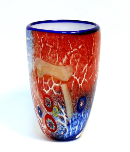 Többszínű melegen összeolvasztott üveg, Murano, XX. sz. második fele, 18 cm