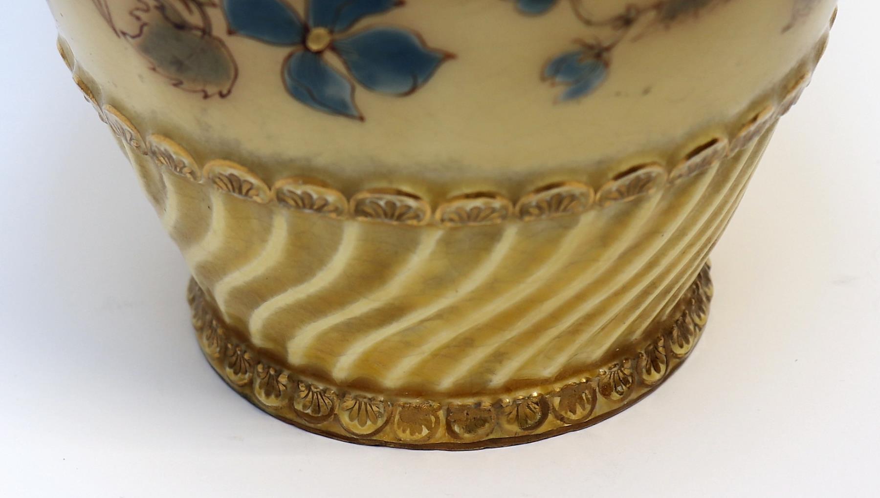 Mázas porcelánfajansz, 1880 körül, 47 cm, jelezve: PÉCS ZSOLNAY, 539, 19 és 1/2 számokkal. régebbi restaurálásokkal
