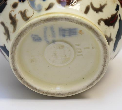 Mázas porcelánfajansz, 19 cm, 1890-1910, jelezve alul: öt tornyos pecséttel, Made in Hungary felirattal, domború körpecséttel, masszába nyomott 1494, 1 és 23 számokkal