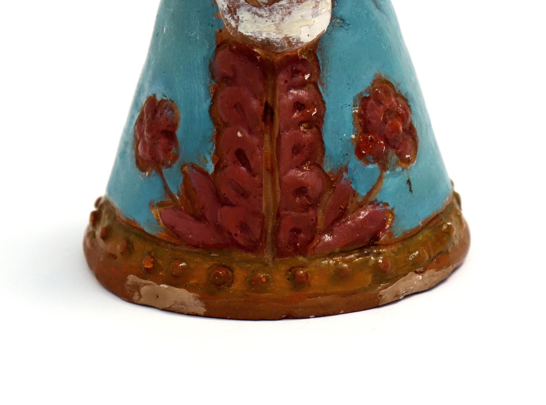 Faragott festett hársfa, XVIII. sz. második fele, festés kopott, XIX. századi üvegvitrinnel, szobor magassága 28 cm, vitrin magassága 38 cm, jobb kéz középső ujja sérült